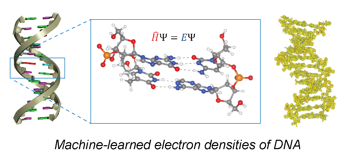 Accurate and efficient prediction of the electronic structure of biological systems such as nucleic acids could lead to breakthroughs in biophysical characterization, but using traditional quantum chemistry methods for these large systems are out of reach. With a structural ensemble from all-atom molecular dynamics, and ab initio calculations of relevant DNA fragments, we build a machine learning model using Euclidean neural networks to predict quantum-accurate electron densities for arbitrary DNA molecules. This ML model is accurate to within 1% error of the quantum reference calculations, scales linearly with respect to the number of atoms, and can include explicit solvation and ions by fragmenting the training set (Lee, Biophys. J., 2022; Lee, PLoS ONE, 2024).